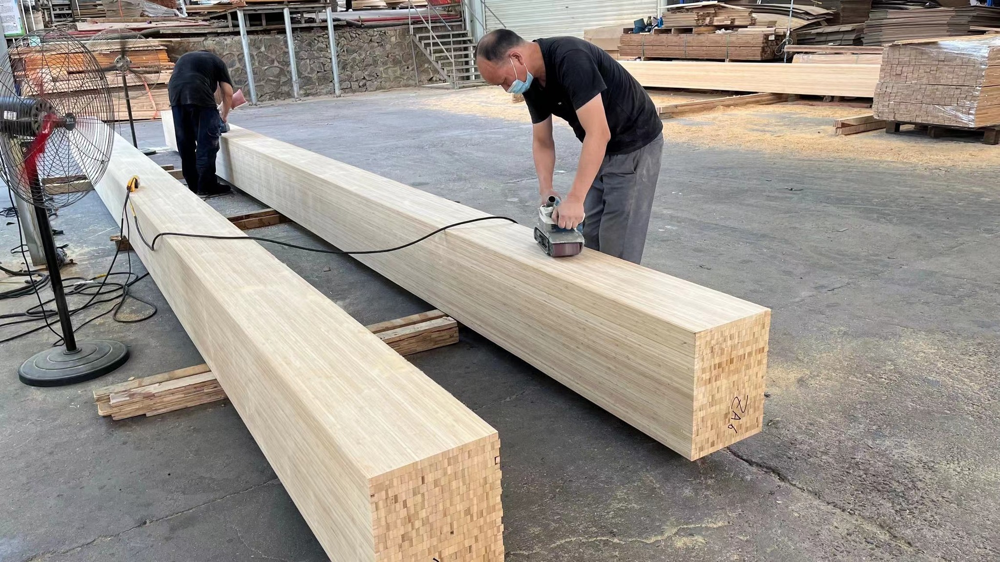 3️⃣ Ép nhiều lớp song song hoặc chéo sợi, giúp tre có độ ổn định cơ học cao;